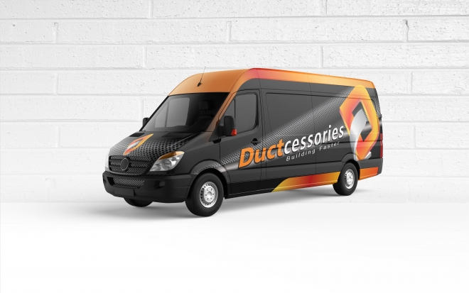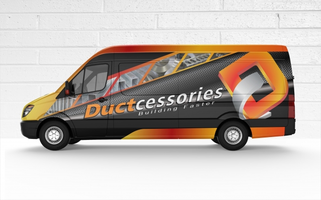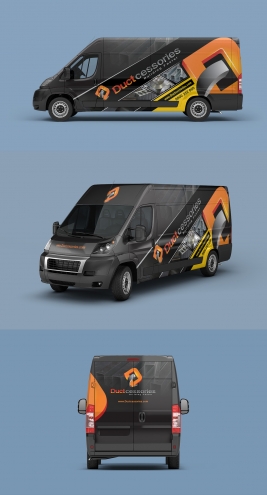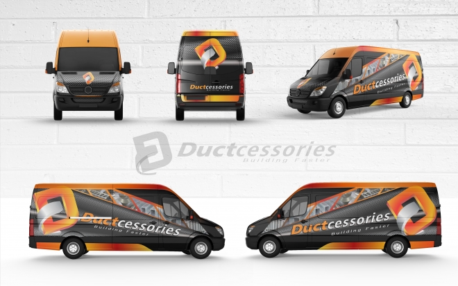 We would like a really cool design for the wrap of a Ford 250 Transit Van Extended Length High Roof. Please see attached files for the Ductcessories Logo